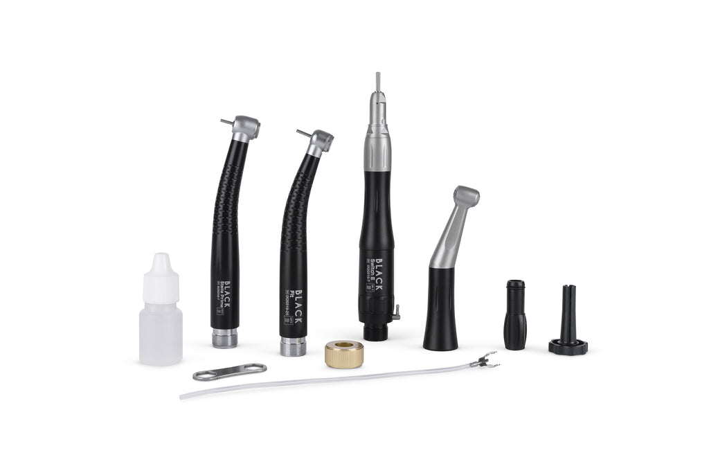 Conjunto con herramientas de alto desempeño y con una pieza de iluminación de alto rango, especiales para aligerar la práctica diaria odontológica.
