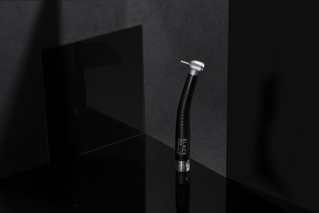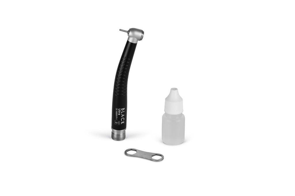 Cuerpo anodizado elegante, cabezal estándard con cambio de fresa por medio de push e irrigación altamente eficiente